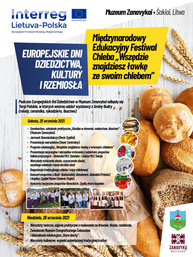 W targach wezmą udział zespoły śpiewacze z Gminnego Ośrodka Kultury w Budrach oraz wystawcy z Gminy Budry, którzy zaprezentują m.in. miody, ceramikę, rękodzieło i tkactwo. Będzie to jeden z punktów programu Międzynarodowego Edukacyjnego Festiwalu Chleba „Wszędzie znajdziesz ławkę ze swoim chlebem”. Gospodarzem 2-dniowego wydarzenia będzie Muzeum Zanavykai, który przeniesie uczestników w XX wiek.