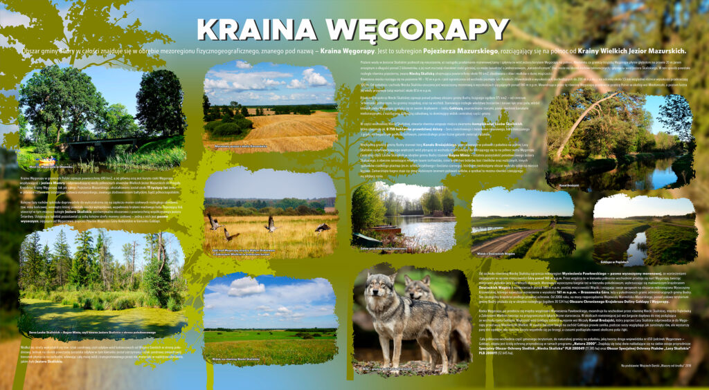 SZLAK WILKA (7,5 km) – wyruszając z Budr, jednego z największych w Europie siedlisk bociana białego, w kierunku Skaliska, możesz przeżyć niezapomnianą przygodę z dziką przyrodą, stanąć „oko w oko” z majestatycznym łosiem, spotkać watahę dzików czy wędrującego bezdrożami wilka. Oznaczenie: kolor zielony