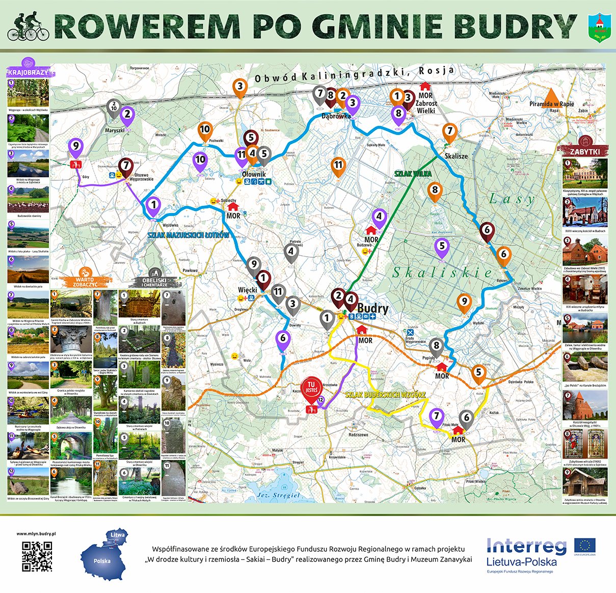 Dzięki realizacji projektu „W drodze kultury i rzemiosła Sakiai – Budry” wybudowanych zostało 5 Miejsc Obsługi Rowerzystów, tak zwanych MOR-ów. Powstały one w Sobiechach, Popiołach, Piłakach Małych, Budzewie i Zabroście Wielkim. Do tego piękne krajobrazy można podziwiać z dwóch punktów widokowych – Góry i Brzozowska Góra.
